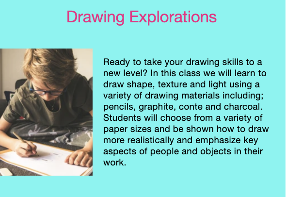 In addition to our studio classes, we also cater to special events, parties and school breaks. We love being part of the journey that our students take to become confident, vibrant artists! Our students, keep coming back week after week for a fun hands on educational experience.